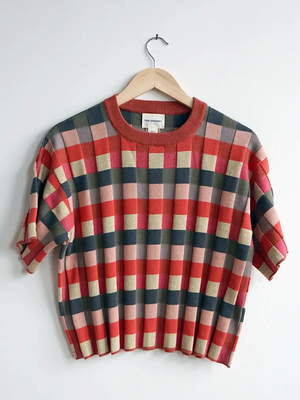 The Anni Grid Plaited Tee reimagines our love of Bauhaus grids through the art of knitting. By combining striping with the plaiting technique, weve crafted a dimensional pattern that reads like blocks of color woven into the fabric. This piece is breathable, lightweight, and endlessly versatileartful everyday dressing at its best. - 100% cotton - Short-sleeved, relaxed fit - Ethically made in small batches
