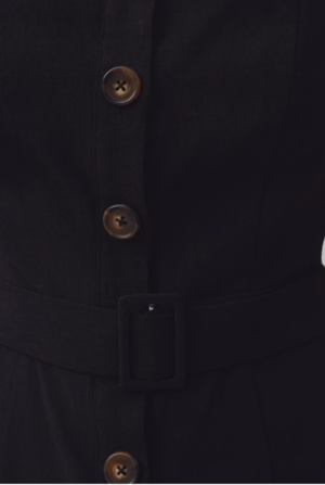 - Straight fit - Button down front - Bound straps with back adjusters - Belt with self covered buckle - Medium weight woven fabric
