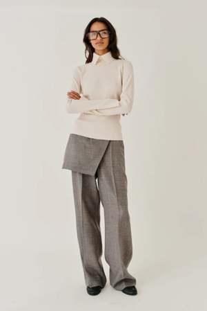 The Pine Skirt Pants by The Garment feature tailored pants with a skirt overlay and a straight leg. Color: Grey Melange Fabrication: 100% Virgin Wool Fit Notes: These pants run true to size. The Garment sizing: 4: XXS 6: XS 8: S 10: M 12: L