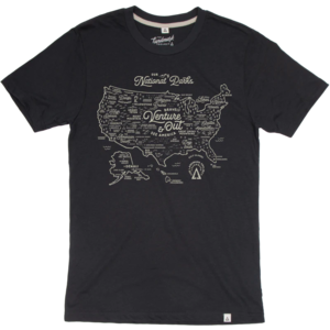 Adventure bravely and see America from sea to shining sea! This tee features a detailed map of Americas 63 National Parks. If youre the type to reminisce about past adventures, or if you love planning the next road trip, this tee is for you. Quick Specs: - Unisex Sizing / Standard Tee Fit - Sustainably made from 60% BCI Cotton and 40% Recycled Polyester