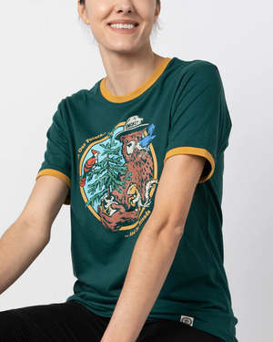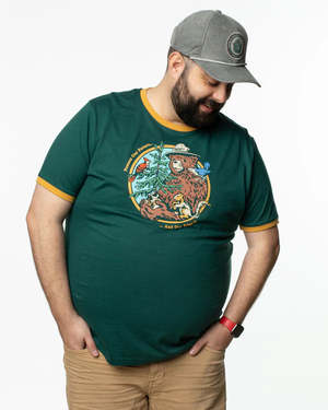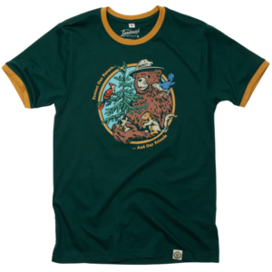 Celebrate Smokey Bears message with this fun ringer tee that reminds us the forest is full of life beyond just trees. Slip it on to honor all the forests friends while supporting wildfire prevention10% of sales go to education efforts. Crafted by The Landmark Project under US Forest Service license, this tee features unisex sizing and a comfy fit, made from 60% sustainable cotton and 40% recycled polyester.