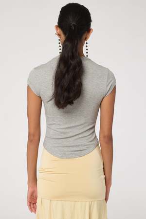The Line by K's Lavi Tee is a sleek, flattering essential with cap sleeves and a curved hem that works solo or layered. Thick binding keeps everything in place while the slinky fabric moves with you. DETAILS - Fitted fit - Lightweight stretch 2x2 rib - Unlined, intentionally lightweight and slightly sheer - Curved hem - Regular length; length hits at the high hip - Karishma is 5'7" with measurements 28-23-33 and wears size XS - Fits true to size; take your normal size - Ethically made in Los Angeles COMPOSITION & CARE - 90% Micro Modal, 10% Spandex - Turn garment inside out, machine wash cold, gentle cycle, lay flat to dry, do not bleach