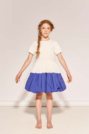AVAILABLE TO PRE-ORDER Dress with cotton jersey bodice and taffeta colour-block puff-ball skirt. Care instructions: - Wash at 30C with similar colours - Cool iron on reverse Colour: Kefir & Majorelle Blue Age group: Adult