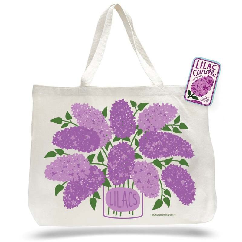 The Lilac Candle & Tote Set pairs two home essentials a hand-poured soy candle and a matching cotton canvas tote into one giftable set. Set includes: 1 Lilac Soy Candle + 1 Lilac Canvas Tote Bag All-Natural Soy Candle 4 oz. sardine-style rectangle tin Approximately 24-hour burn time 100% natural soy wax Custom blended, paraben- and phthalate-free fragrance oils Two lead-free cotton wicks for a clean, even burn Sliding lid stores neatly under the candle when lit Measures 4" x 2.5" x 7/8" Hand-poured locally in Washington, DC by District Candle Lab Canvas Tote Bag Measures 20"W x 15"H x 5"D with gusseted bottom and 20" handles 100% cotton heavy canvas with reinforced stress points Larger than a standard tote, built for farmers market hauls and grocery runs Designed, printed, and packaged in the USA