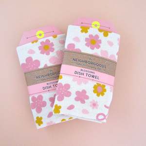 The Blossom Dish Towel by The Neighborgoods is hand screen-printed and made from 100% unbleached cotton. Inspired by the cherry blossoms in Washington, DC, this kitchen towel features bright pink and yellow flowers to add color to your everyday life. Hand screen-printed with eco-friendly water-based inks. Machine washable. Packaged in a ready-to-gift belly band. Printed in the USA, hand packaged and designed in DC. Measures 24W x 26L.
