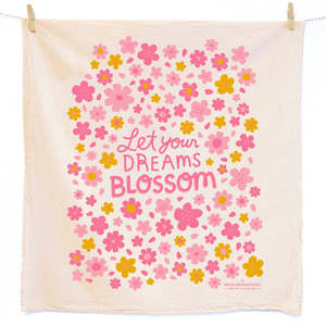 Our Blossom Tea Towel and Pot Holder Set brings you two kitchen staples: a screen-printed cotton tea towel and playfully shaped pot holder made for everyday cooking and baking. Use the absorbent cotton tea towel to dry dishes, wipe counters, or line a bread basket, and grab the durable pot holder whenever you need to handle hot cookware safely. Both pieces feature vibrant, original artwork that adds a splash of color to your kitchen. This set of everyday kitchen essentials makes a great hostess gift, housewarming present, or unique gift for any foodie in your life. Set includes: - 1 Blossom Tea Towel - 1 Blossom Pot Holder Tea Towel - 100% unbleached cotton - Hand screen-printed with eco-friendly, water-based inks - Machine washable - Comes packaged in a ready-to-gift belly band - Doubles as a reusable napkin or eco-friendly gift wrapping - Printed in the USA; hand packaged and designed in Washington, DC - Dimensions: 24" W x 26" L Pot Holder - Measures approx. 9.75" x 7.75" - 100% cotton outer with inner fill made from recycled plastic fibers - Built-in pocket keeps hands protected from heat and gives you a better grip on hot cookware - Machine washable; hang dry