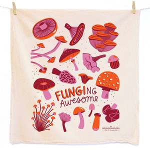 The Mushroom Tea Towel and Pot Holder Set includes two kitchen staples: a screen-printed cotton tea towel and a playfully shaped pot holder for everyday cooking and baking. Tea Towel 100% unbleached cotton Hand screen-printed with eco-friendly, water-based inks Machine washable Dimensions: 24" W x 26" L Pot Holder Measures approximately 9.75" x 7.75" 100% cotton outer with inner fill made from recycled plastic fibers Built-in pocket helps protect hands from heat and provides a better grip on hot cookware Machine washable; hang dry Printed in the USA; hand packaged and designed in Washington, DC.
