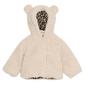Teddy jacket with hood featuring ears, snap closure down the front, and long sleeves. 100% Polyester / Lining: 100% Cotton Hand wash only. Style: AW25BCO2C42