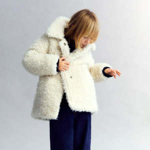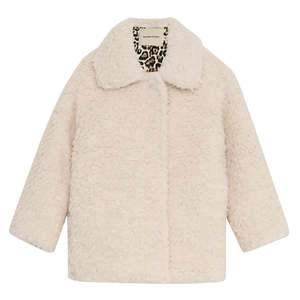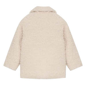 Collared teddy jacket with snap closure down the front, side seam pockets, and long sleeves. 100% Recycled Polyester / Lining: 100% Cotton Hand wash only. AW25KCO2C42