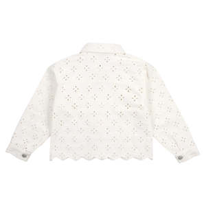 Founded in Spain in 2018 by Estefana Grando, The New Society blends timeless aesthetics with sustainability, inspired by her vision and the birth of her children. Evolving from a kids' fashion brand to include womenswear, it remains committed to emotion-driven design and a more conscious future in fashion. - Eyelet lace jacket - Scalloped hem - Button closure down the front - Patch pockets on the chest with buttoned flaps - Long sleeves with buttoned cuffs 100% Cotton Machine wash 30 delicate. Style S26AHB1P453.