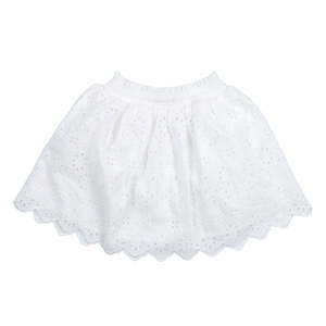 Founded in Spain in 2018 by Estefana Grando, The New Society blends timeless aesthetics with sustainability, inspired by her vision and the birth of her children. - Eyelet lace skirt - Scalloped hem - Elasticized waist 65% Polyester, 35% Cotton Machine wash 30 delicate. Style code: S26AHB1P452.