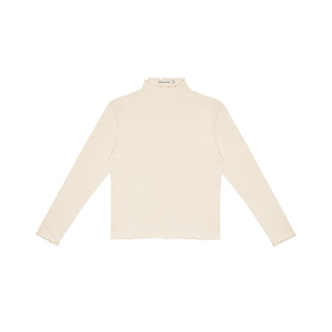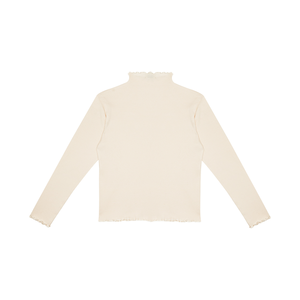 New from The New Society for Autumn/Winter 2021. Finely ribbed mock neck tee finished with lettuce edging. A versatile top for layering. - Kid's shirt - 100% organic cotton - Color: Natural - Funnel neck - Long, slim sleeves - Relaxed fit