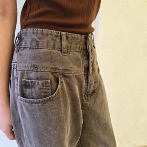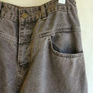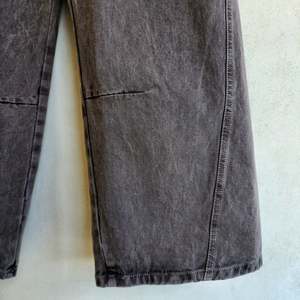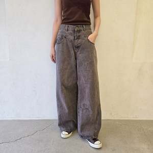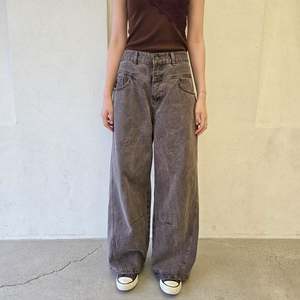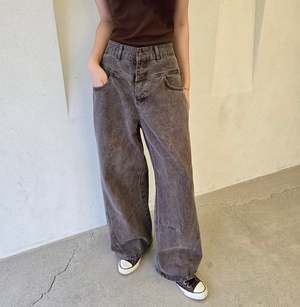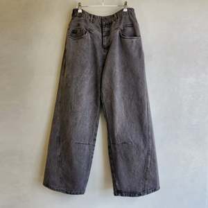Barrel cut jeans with extra side panel for a wide leg. Buttons at waist for adjustable fit. Zipper and button fastening. Side and back pockets. Belt loops. 100% Cotton.