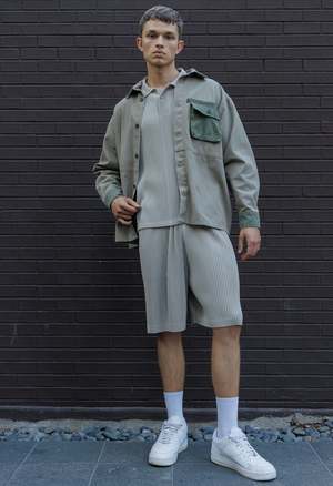 One Size. Fits XS-L Color: Beige Pleated Detailing 100% Polyester Dry Clean Only By The NKC Store Product Measurements Waist: 66-132cm / 26-52in Length: 53cm / 21in Model is 195cm / 6'3" wearing size O/S