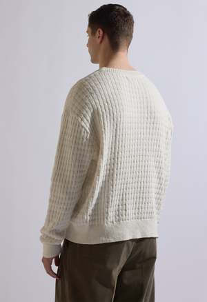 One size. Fits S-L Color: White Cable Knit Sweater 100% Cotton Dry Clean Product Measurements: Width: 52in Length: 26in