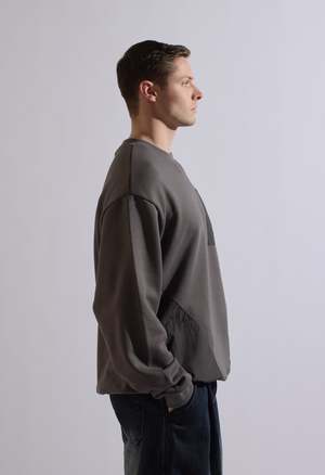 One Size: Fits XS-XL Color: Grey Long Sleeve Sweatshirt Elastic Waistband Large Front Pocket Utility Side Pocket 70% Cotton 30% Polyester Measurements: Chest: 25in / 63cm Length: 27in / 68cm