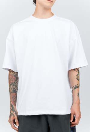 One Size. Fits XS-XL Color: White Oversized boxy fit Classic White Tee 80% Cotton 20% Polyester Dry Clean Only By The NKC Store Chest: 122cm / 48in Length: 74cm / 29in Model is 185cm / 6'1" wearing size O/S