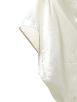 The Tammi Top features a short sleeve design with a cinched waist and drapery detailing. Made from lightweight satin fabric (100% polyester).
