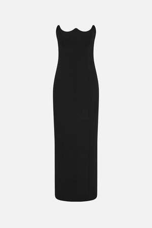 Sizes: XS, S, M Sculpted by a discreet wire for shape and integrity, the Avatus balconette neckline mirrors the arc of wings mid-soar, a quiet ode to movement and grace. Crafted in structured crepe, the Avatus Crepe Midi Dress contours the form with vertical seam detailing and a tailored bodice that elongates and refines. The mid-calf hemline offers a minimalist finish. - Wire balconette neckline - Strapless - Slim fitting midi dress - Back invisible zip access 95% Polyester, 5% Elastane