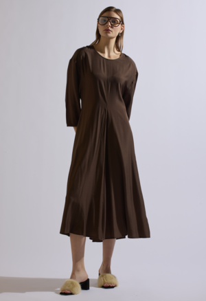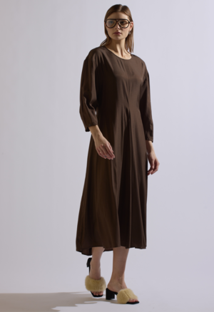One Size. Fits XS-M Color: Brown Hidden zipper opening on back 52% Rayon 42% Tencel Dry Clean Only By The NKC Store Product Measurements: Waist: 34in Bust: 34in