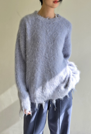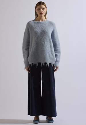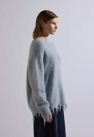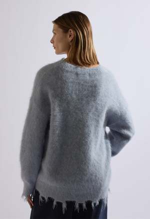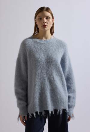 One size Color: Blue Distressed sweater 40% Alpaca 31% Wool 29% Nylon Dry clean By The NKC Store