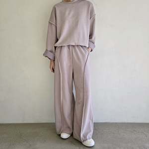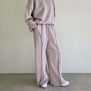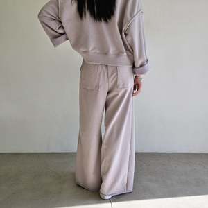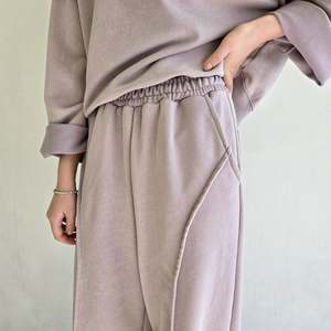 Relaxed fit sweatpants featuring an elastic waistband, raw hem, and piping detail. Made from 100% cotton. Dry clean recommended. One size fits XS-M.