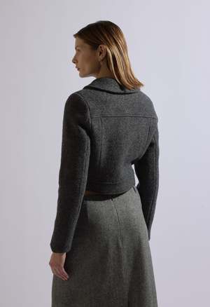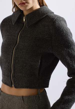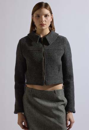 One Size: XS-M Color: Grey Cropped Wool Jacket Collared Zip Up Fastening Lined 100% Wool Measurements Length: 17in / 43cm Bust: 34in / 86cm