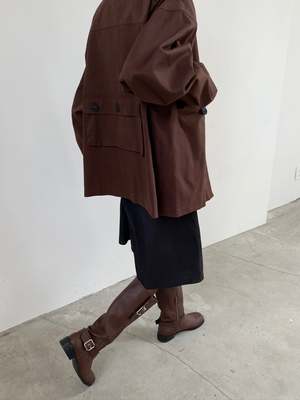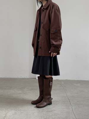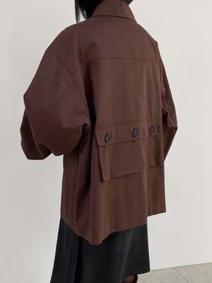 Cotton jacket with button-up front, collared neckline, utility pockets on front and back, and buttons on sleeves to adjust fit. Lined for comfort. Made from 100% cotton. Measurements: Bust: 44in / 112cm Length: 28in / 71cm