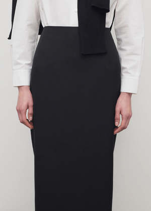 An ankle-length pencil skirt in fluid lightweight wool with a slim fit and a concealed two-way zipper at the center back. 100% Wool Made in Italy.