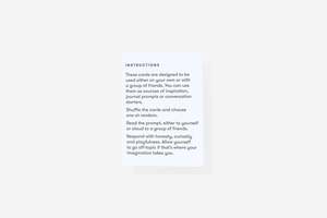 For many of us, one of our strongest yet vaguest desires is to be more creative. But how can we achieve this? Creativity isnt reserved for artists its about how we think, explore, and play. Its a skill we can nurture and gently tease out of ourselves. This set of cards is a tool to help us awaken the imaginative and original parts of our minds. Each prompt invites us to surprise ourselves, ask unusual questions, and rediscover our longing to create something new.