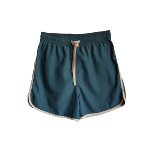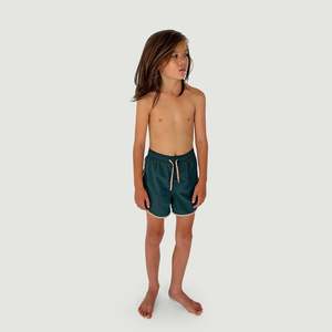 From The Set. Relaxed fit swim short in a quick drying GRS recycled polyester with contrast piping and signature eyelets on the back pocket for a lightweight swim experience. - Kid's swim bottom - 100% recycled nylon - Color: Teal - Quick drying - Elasticated waistband - Silicone dipped drawcord