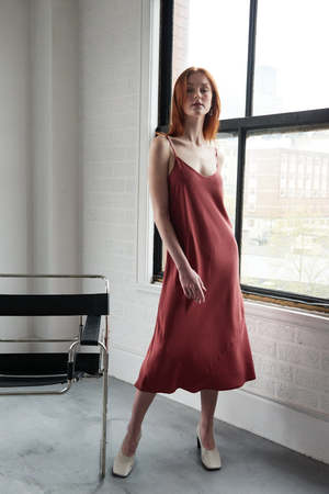 The Long Slip Dress is designed to be worn as an under layer, or on its own as a nightie or dress. This piece is cut on the bias of the fabric with a diagonal seam and features adjustable straps and a delicate V neckline. This shape was introduced to the collectsion when we discovered that finding a bias cut slip is pretty difficult, especially for sizes XL and up. There's just something special about our Tencel twills, their silky texture and durability make for a great addition to your day, either while you're awake or asleep. This Tencel is warm, deep sienna colour. - Bias bound deep v-neck - Adjustable straps - Bias cut - Slight high-low hem - Made in Canada with pride - 100% Tencel Lyocell - A dark, burnt sienna colour - We describe this fabric as smooth, medium weight, and opaque. See our Fabric Guide below for more information. - Cold water wash and hang dry, take care of your nightie and it will last you for years - Brand: The Sleep Shirt - See this item in other fabrics: Long Slip Dress Sizing Tips - Model is 5'7 and is wearing a size Small - This item is available in Extra Small, Small, Medium, Large, Extra Large, XX Large, 3X Large, and 4X Large. - Extra Small: bust is 16.5" (circumference 33"), hip is 18" (circumference is 36"), front length is 41.5" - Small: bust is 17.5" (circumference 35"), hip is 19" (circumference is 38"), front length is 42" - Medium: bust is 18.5" (circumference 37"), hip is 20" (circumference is 40"), front length is 42.5" - Large: bust is 19.5" (circumference 39"), hip is 21" (circumference is 42"), front length is 43" - Extra Large: bust is 22" (circumference 44"), hip is 23.5" (circumference is 47"), front length is 43.5" - XX Large: bust is 24.5" (circumference 49"), hip is 25.5" (circumference is 51"), front length is 43.75" - 3X Large: bust is 27" (circumference 54"), hip is 27.5" (circumference is 55") front length is 44" - 4X Large: bust is 29.5" (circumference 59"), hip is 29.5" (circumference is 59"), front length in 44.5" - Use the Sizing Chart below to determine what size best fits your body measurements. Please note that the measurements above are of the actual item More questions? Read our FAQ or email us at info@thesleepshirt.com.