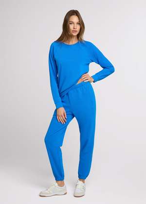 The Raglan Sweatshirt by The Standard Stitch is crafted from organic cotton French Terry for comfort and sustainability. Designed with a classic crew neck and relaxed fit, it's perfect for lounging or casual outings. Each piece is proudly made in Los Angeles using non-toxic, low impact dyes. Fabric & Care Self: 100% Organic Cotton Rib: 49% Organic Cotton, 48% Recycled Cotton, 3% Spandex Machine wash cold with like colors, do not bleach, tumble dry low or lay flat to dry, low iron when needed. Sustainability - Made of certified recycled & organic materials - Uses less water & energy than conventional cotton - Reduces textile waste from entering landfills - Helps lower greenhouse gas emissions - Finished with non-toxic & low impact dyes Model Measurements Daria is wearing size Small: Height: 59.5, Bust: 31, Waist: 24.5, Hips: 34 Bianca is wearing size X Large: Height: 510, Bust: 43.5, Waist: 37.5, Hips: 48 Made in the U.S.A.