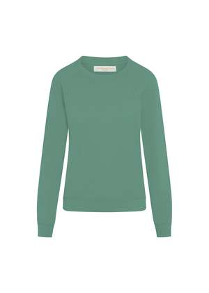 Take the compliments. This flattering women's raglan sweatshirt is crafted from organic cotton French terry, ensuring both comfort and sustainability. Designed with a classic crew neck and a relaxed fit, it's perfect for lounging or casual outings. Each piece is proudly made in Los Angeles using non-toxic, low-impact dyes for a garment you can feel good about wearing. Fabric & Care Self: 100% Organic Cotton Rib: 49% Organic Cotton, 48% Recycled Cotton, 3% Spandex Machine wash cold with like colors, do not bleach. Tumble dry low or lay flat to dry. Low iron when needed. Our French terry fabric is super soft; we recommend storing it folded in a dresser rather than hanging. Sustainability Made of certified organic cotton. Uses less water than conventional cotton. Cotton is grown without pesticides or fertilizers. Helps lower greenhouse gas emissions. Improves soil health and biodiversity. Non-toxic, low-impact dyes. Each Raglan Sweatshirt has an impact of approximately: - 264.86 gallons of water saved - 1.41 lbs of carbon dioxide prevented - 0.80 kWh of energy saved - 0.56 lbs of waste diverted from landfill Ethically made in Los Angeles, USA. Size & Fit Relaxed fit. Daria is wearing size Small. Height: 59.5 Bust: 31 Waist: 24.5 Hips: 34 Bianca is wearing size X-Large. Height: 510 Bust: 43.5 Waist: 37.5 Hips: 48
