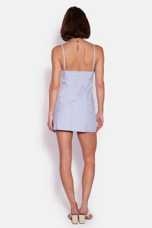 Structured but sweet. Kate is that one poplin mini you reach for when you need to look cute with zero effort. Just add sandals and go. - Color: Pale Blue - 100% cotton - Made in NYC - Fitted bodice with bust seaming - Adjustable straps - Mini length - Style #: BCW25K83B