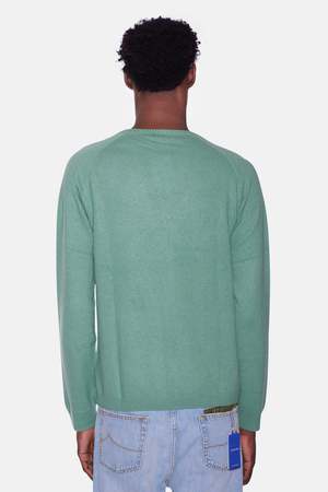 Not to brag, but this 100% cashmere sweater is one of our best. Feel it and you'll know why. - Color: Aloe - Thin cashmere perfect for spring - In single end yarn knitted in 12gg. 270g. - Loose tension knitting. - All seams hand linked with fully fashioning detail at armhole. - Crew neck-line - 100% cashmere - Designed in NYC
