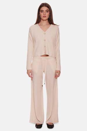 Our Sophie wide leg pant, made from a luxurious ribbed cashmere fabric that drapes effortlessly for a perfect fit and length. Fitted waist made with stretch and drawstring option for you to adjust to your perfect fit. Style with the matching Beatrice Ribbed Cardigan and complete the fit! - Color: Ricotta - Luxe ribbed cashmere pants - Relaxed fit - 100% Cashmere - Designed in New York - Made in New York - Style #: TC20022 - CARE INSTRUCTIONS: - Dry clean only Mpn TC20022 Sku TILWFW24-38