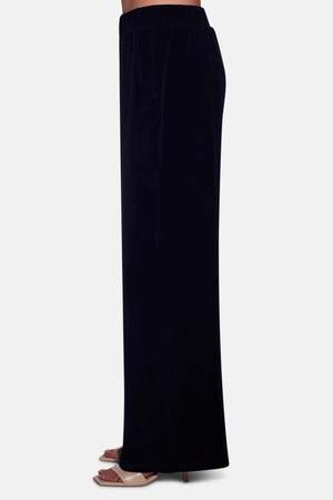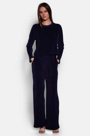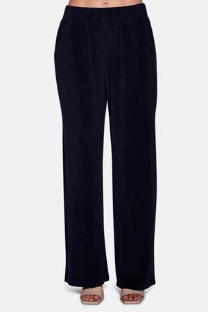 The Goldie Wide Leg Terry Pant features a wide leg silhouette with a low to mid-rise. It has an elasticated waistband with drawstring and functional side pockets. Made from an ultra soft terry fabric. Designed and manufactured in NYC. 45% Cotton, 35% Polyester, 20% Rayon.