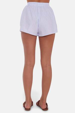 Perfect for summer lounging or Halsey poplin short is made from the finest poplin here in New York City. Detailed with a drawstring around the waistband and side pockets. - Color: Micro stripe White/Blue - Relaxed fit - Elasticated waistband with drawstring - Made in NYC - Made from fine poplin 100% Cotton - Hand wash cold - No bleaching, no tumble dry, lay flat to dry - Dry cleanable - Style #: WVBC560B Mpn WVBC560B Sku TILWSU24-19