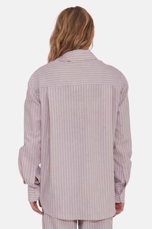 Whether you're relaxing in a tropical setting or exploring city, this linen button down shirt will keep you cool and stylish wherever you go. Pair with the matching shorts or wide leg pant for a chic look or dress up with an elevated trouser for a night out on the town. - Color: Beige Stripe - Oversized fit, Runs big - Button down closure - Classic spread collar with a front pocket detail on the left side of the chest - Made in New York City - Made from 100% Linen - Hand wash cold - No bleach, no tumble dry, lay flat to dry - Dry Cleanable - Style #: WVBC919T-CL Mpn WVBC919T-CL Sku TILWSU24-68 Google product category 1604 Google product category 1604