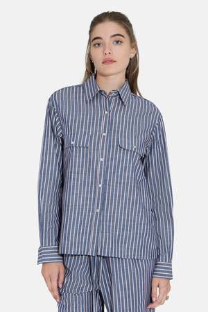 Tailored and effortless, the Coco Overshirt is designed in a lightweight striped cotton with a relaxed, slightly oversized fit. Its your go-to for polished layering. Button it up, wear it open, or pair it with the matching Georgica pantthis one does it all. - Color: Red Stripe - Spread collar - Pearl button closure - Double chest pocket - 100% cotton - Made in NYC - Style #: WVBCW23SHRT88WN