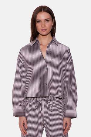 Wear it to work or dinner; the crisp structure speaks for itself. This cropped button-down features a boxy silhouette, contrast collar, button-up closure, wide spread collar, and 3/4 sleeves with adjustable buttons for a rolled-up look. Made in NYC from super fine poplin. Composition: 100% Cotton Hand wash cold, no bleaching, no tumble dry. Lay flat to dry. Dry clean recommended. Style #: WVBCW2410TCMB Mpn: WVBCW2410T Sku: TILWF25-51