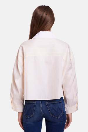 A crisp, structured crop button-down shirt featuring a cropped boxy silhouette, contrast wide spread collar, button-up closure, and 3/4 sleeves with adjustable buttons for a rolled-up look. - Made in NYC - Made from super fine poplin - Composition: 100% Cotton - Hand wash cold, no bleaching, no tumble dry - Lay flat to dry - Dry clean recommended - Style #: WVBCW2410TCMB - MPN: WVBCW2410TCMB - SKU: TILWF25-46