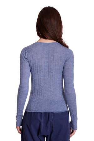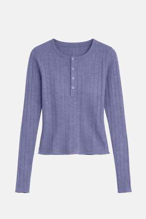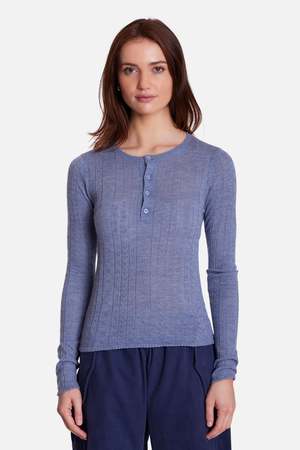 Your favorite henley, with a feminine twist. The Sylvia Pointelle is soft, airy, and delicately detailedperfect for when you want something a little sweeter. - Color: Blue - Lightweight pointelle knit - Slim, flattering fit - Button henley front - Style #: W25-011 MPN: W25-011 SKU: TILH25-58