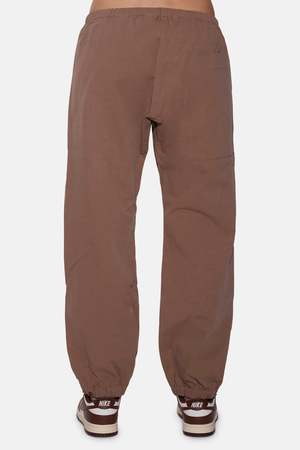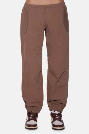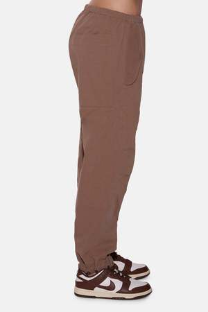 Cool girl comfort. Justine brings that effortlessly oversized vibe with a cinched ankle and easy pull-on waist. Made for beach walks, city errands, or doing absolutely nothing. - Color: Brown - Lightweight cotton - Relaxed fit with elastic waist - Cinched ankle cuffs with snap for flexibility - Front utility pockets - Style #: BCW25W84B