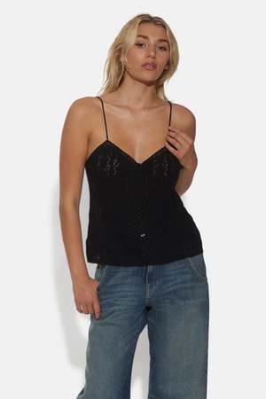 - Color: Black - Cami strap tank with button up closure - Crochet detailing - Great paired with jeans - Composition: 100% Cotton - Fits true to size - Style #: TILE24-009 Mpn TILE24-009 Sku TILWFW24-02