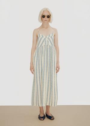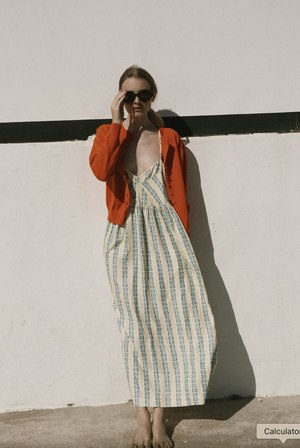 Fun, summery strappy dress in pastel yellow and blue floral. Viscose / Rayon Blend. Zip closure. Ankle length. Designed in Barcelona by The Tiny Big Sister.
