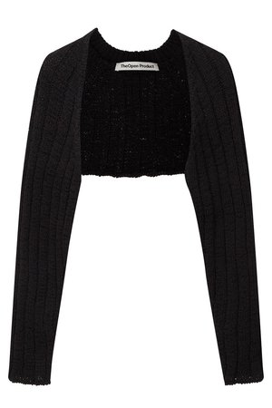 Long sleeve knit cotton-blend cardigan Highly cropped bolero style Open front, no closure Cropped hem. Dry Clean - Measurement 1 (S)- 9.25 Length, 16.25 Bust (Measured flat) 2 (M)- 10.75 Length 18 Bust (Measured flat) 90% COTTON, 10% POLYESTER Made in Korea By THEOPEN PRODUCT