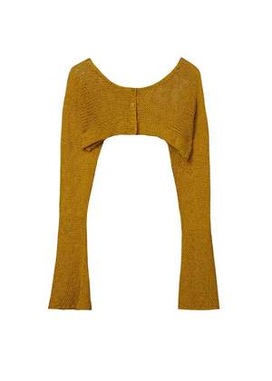 Normal fit. 50% Korean paper yarn, 50% cotton. Model is 5ft 8" and wears size 1. - Paper yarn blend fabric - Wide round neck - Button closure on the front and back - Flared sleeves