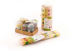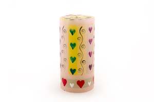 Hand poured and hand painted pastel heart candles. Made in South Africa from high-quality natural paraffin wax with a 100% cotton wick. Unscented, smokeless, and free from added toxins. Tapers are packaged as a matched pair. Each candle is uniquely made; your delivered candle may appear slightly different from the website photo but will be consistent with the collectsion's theme.